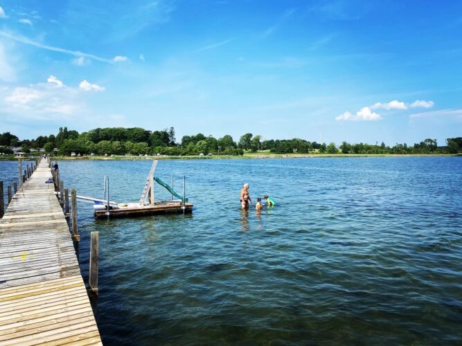 Mange gæster bruger fjorden til stille gåture, korte pauser eller en dukkert på varme dage. Her er ingen strandpromenade eller aktiviteter med høj puls – kun vand, lys og plads.